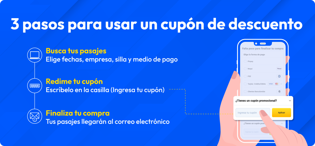 - Al crear la cuenta en Pinbus y usar este cupón en la primera compra en Pinbus.com o en la app de Pinbus, recibirás hasta 10% de descuento (máximo $12.000), del valor de tus pasajes.